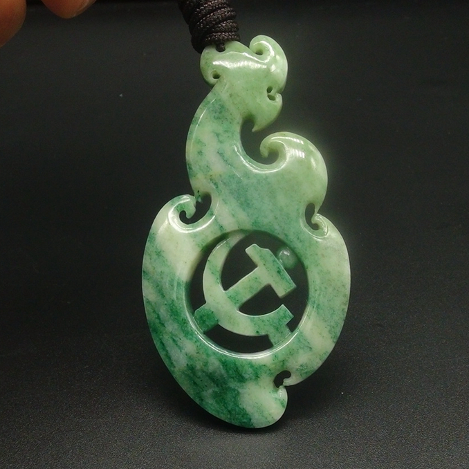 【宝贝说明】 独山玉精品鲜天蓝料手工雕刻而成,玉质细腻,色彩清雅,外围雕刻流畅造型,古风古雅,中心部位镂空雕刻共产党党徽,坚持党的领导与实现中国梦是一体的,故玉品寓意“中国梦”,工艺精细,古风新韵,创新佳作,佩戴收藏送礼神品,值得拥有。
