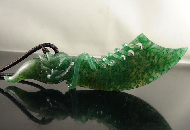 【宝贝说明】 独山玉透水天蓝料手工雕刻而成,立体雕刻刀的形状,尾部为龙头造型,刀体背部雕刻6个椭圆套环,整体造型大气,细节处理也很到位,一把威武雄壮的六环屠龙刀展现在我们眼前,金庸武侠小说中讲到“武林至尊,宝刀屠龙,号令天下,莫敢不从”,将屠龙刀的威力描述得异常霸气,玉品可拿在手中把玩,亦可配支架陈于室内,辟邪镇宅,兴家旺族,非常独特、独一无二的原创玉品,精妙玉品,值得拥有。