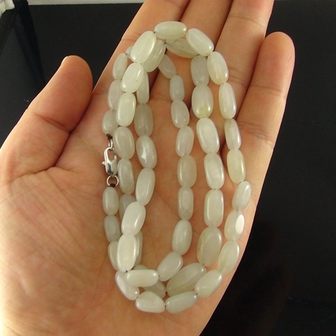 【宝贝说明】 独山玉精品透水冰白料制作而成,切割打磨抛光,制作精良,成就随形珠子,串成精致项链,到手即可佩戴。玉美价优,值得拥有。