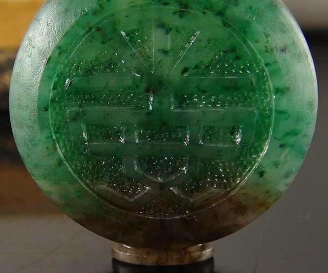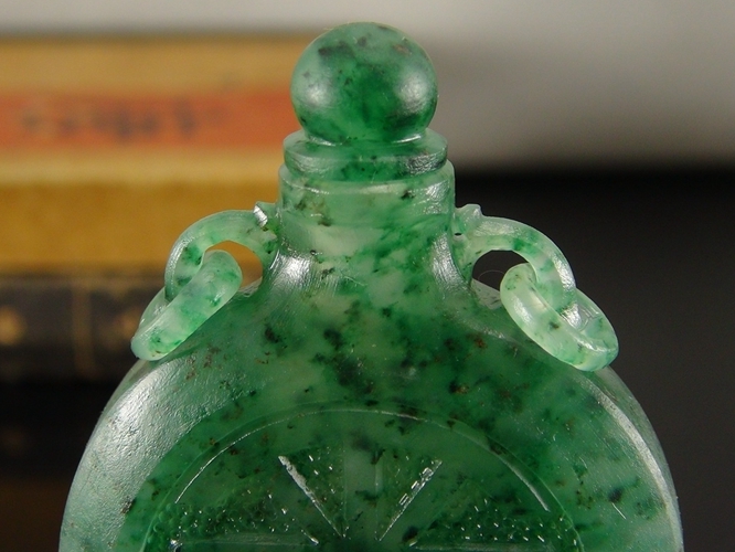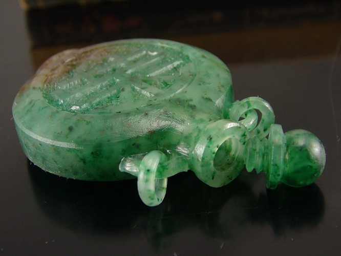 【宝贝说明】 非常精致绝妙的独山玉仿古香水瓶,中空可以装上香水放在车上或家里,瓶盖螺丝口,能取掉拧上,瓶体上部左右各雕刻套环,正面雕刻“福”字,背面雕刻“平安”二字,造型巧妙,工艺精湛,实用性与艺术价值合二为一,成就独山玉玉器无上妙品, 独一无二,稀世珍藏,一旦拥有,别无所求。