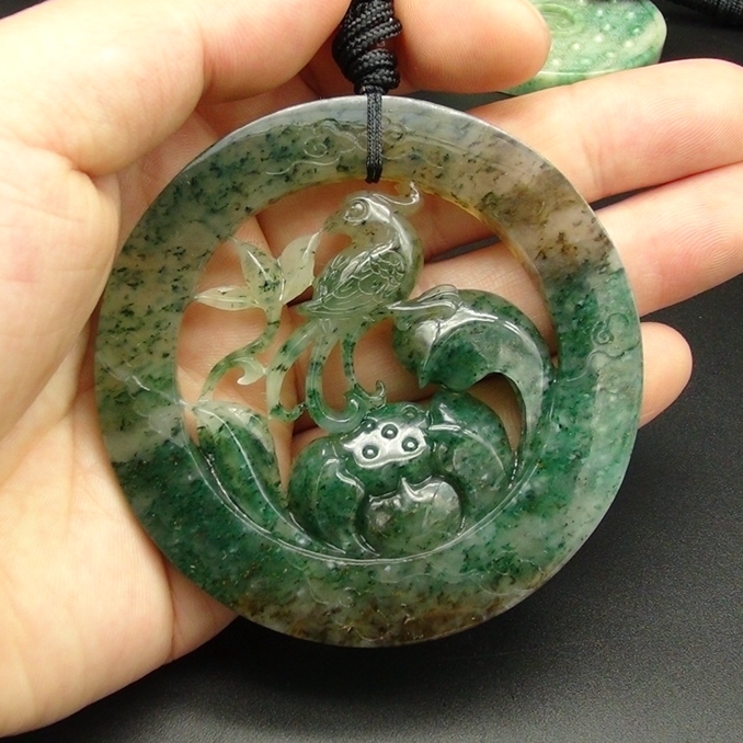 【宝贝说明】 独山玉透水天蓝料手工雕刻而成,圆形玉牌,中心镂空雕刻喜鹊立于莲花旁、莲蓬上,寓意“喜事连连”,玉料水透温润,工艺创新,大号牌子,可挂于车内室内,摆于客厅书房,愿您的人生充满惊喜,时时都有意想不到的收获。