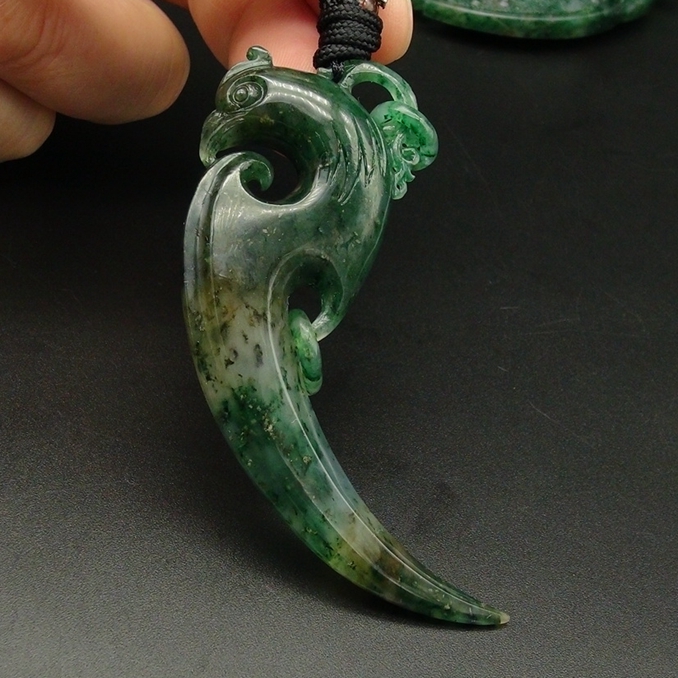 【宝贝说明】 独山玉透水天蓝料手工雕刻而成,玉质细腻老到水头好,立体雕刻鹰首狼牙刀造型,鹰首和刀体各雕刻活环,作者精心设计,精工雕刻,将鹰狼概念与刀的形象完美结合,成就这款题材新颖、精妙绝伦的独山玉鹰首狼牙刀,玉品可拿在手中把玩,亦可配支架陈于室内,愿您有用鹰的眼光、狼的精神开创伟大业绩,旷世绝品,稀世珍藏,一旦拥有,别无所求。
