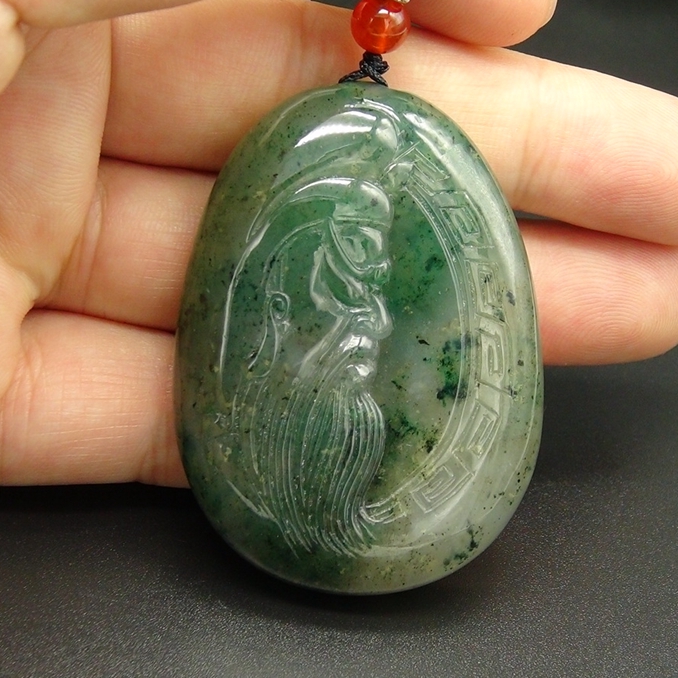 【宝贝说明】 独山玉冰透白天蓝料雕刻而成,玉质细腻水头足,主体雕武财神关公形象和古风纹饰,展现了关公文韬武略、威武霸气、神勇刚猛的光辉形象,雕刻精细唯美,成就绝美玉品,佩戴于身,财源旺,邪祸不侵,护身出入平安。
