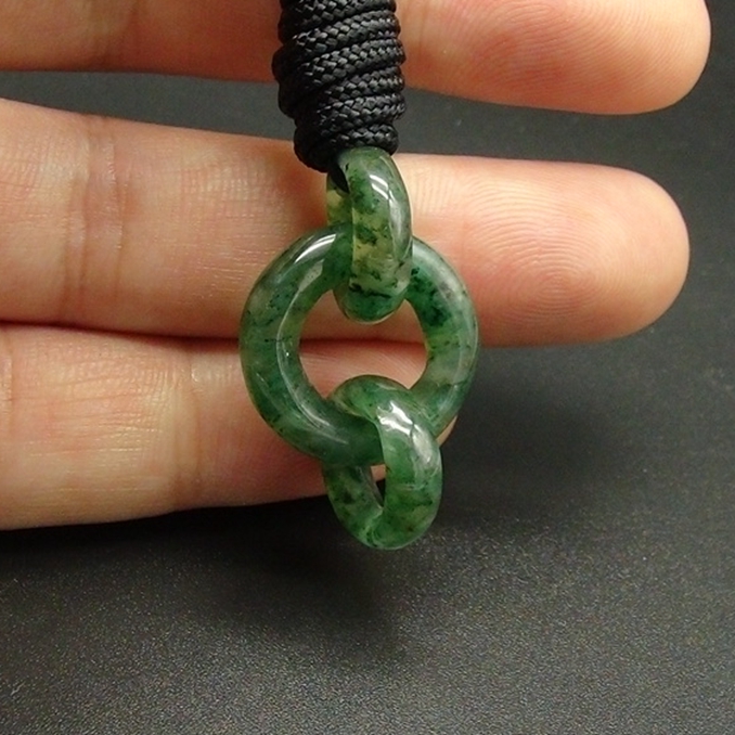 【宝贝说明】 独山玉精品冰透天蓝料雕刻而成,玉质细腻水头好,雕刻三个环,一个大环,两个小环,环环相扣,寓意“缘定三生”,可作吊坠佩戴于胸前,也可以作为耳坠,精工妙品,值得拥有。
