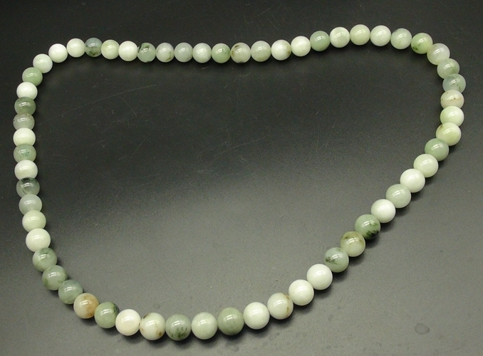 【宝贝说明】 独山玉细白油青飘花料圆珠60颗串成玉链,玉质温润水头足,可以戴于手腕,也可以作为毛衣链外带,或作为项链佩戴,一玉多用,玉美价优,值得拥有。