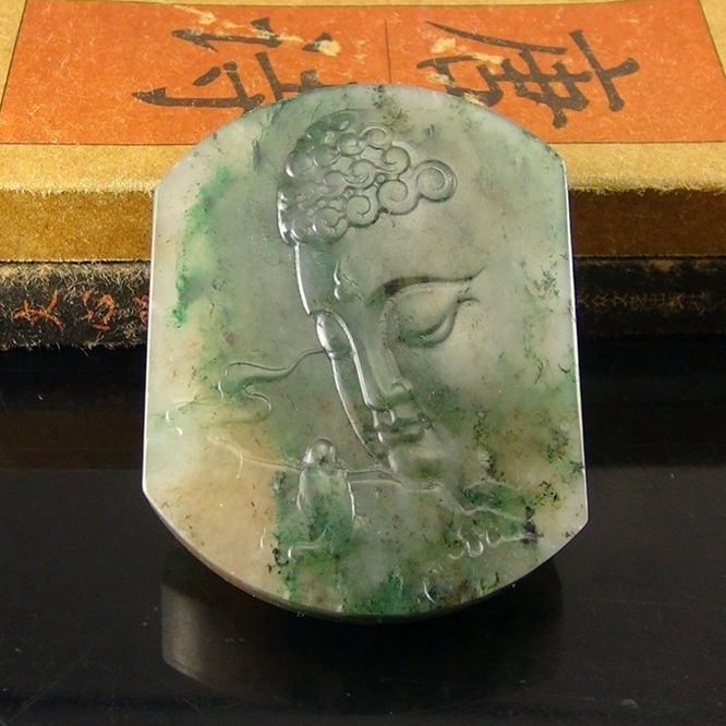 独山玉透水天蓝料挂件:大日如来佛祖