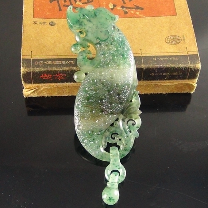 独山玉冰透曙蓝料仿古件:吊环古龙