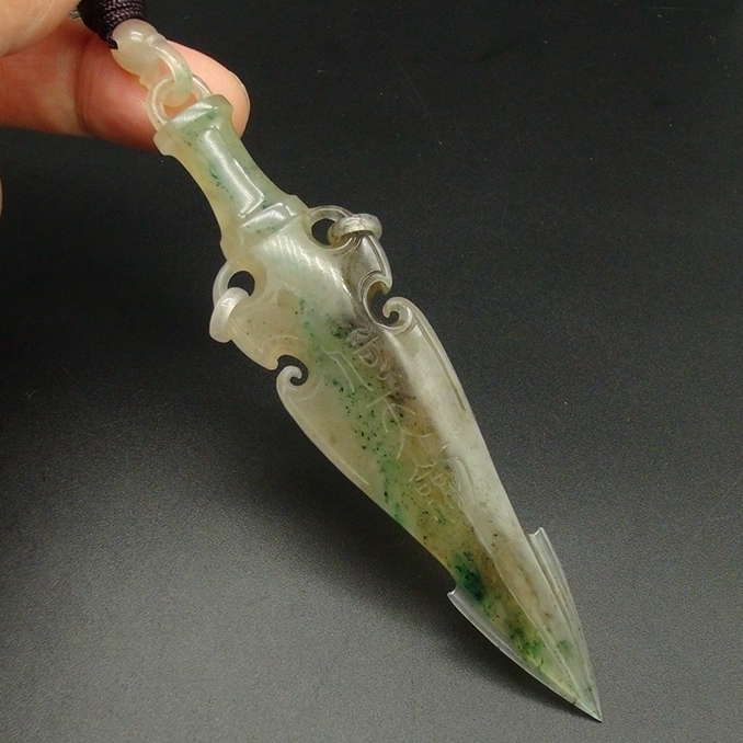 独山玉透水天蓝料龙头鱼把玩件:鲤鱼跳龙门