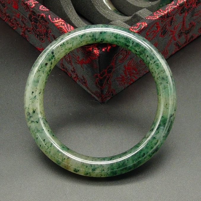独山玉透水天蓝料手镯:圈口58MM圆条玉镯子