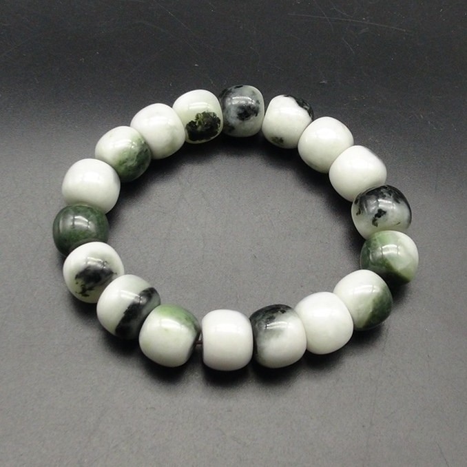 独山玉水透黑白玉料老型珠手串