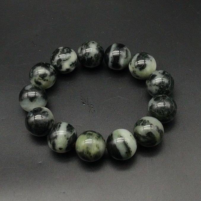 南阳玉雕独山玉独玉水墨黑白料18MM圆珠手链手串子